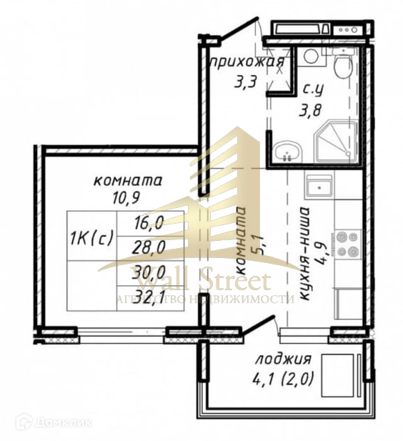 Балкон, лоджия 1 лоджия