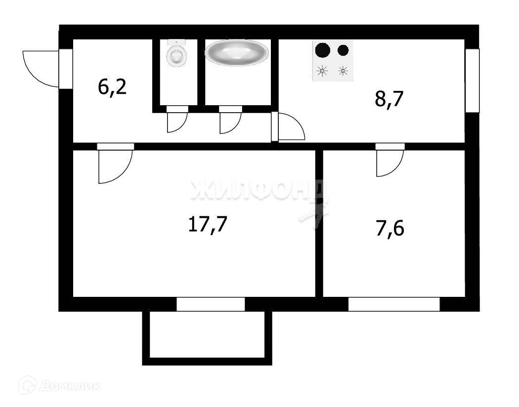 2-комнатная квартира, 43.7 м2, этаж 8 / 9, на продажу в Новосибирске, улица Богдана Хмельницкого, 17