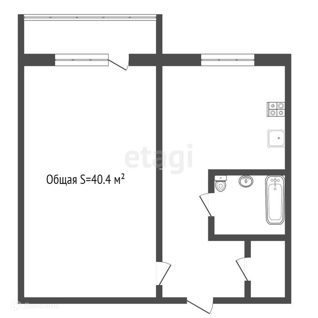 Общая площадь 40.4 м2