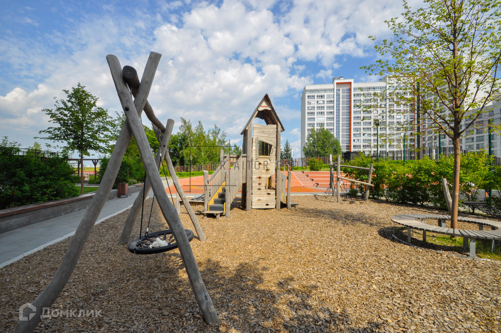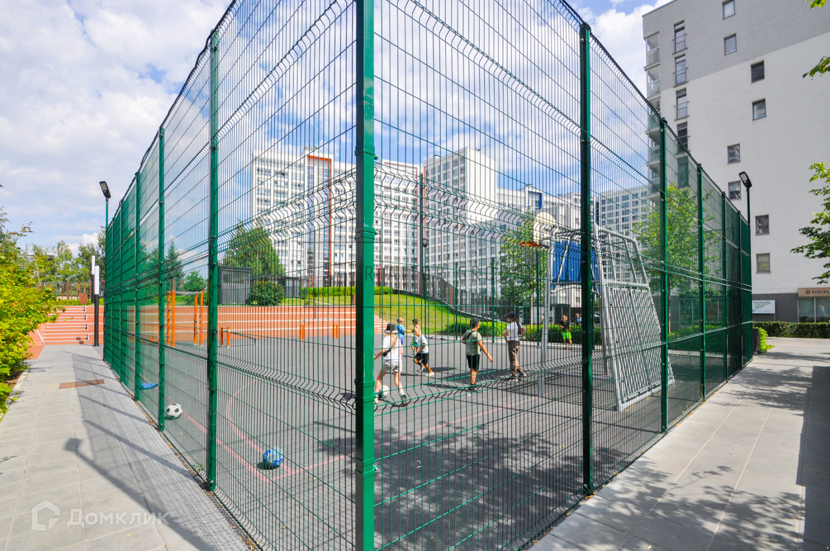 Благоустройство квартала включает пешеходный променад, детские площадки на безопасном покрытии, спортивные зона с тренажёрами и баскетбольной площадкой, зоны отдыха с беседками и пергогой для взрослых.