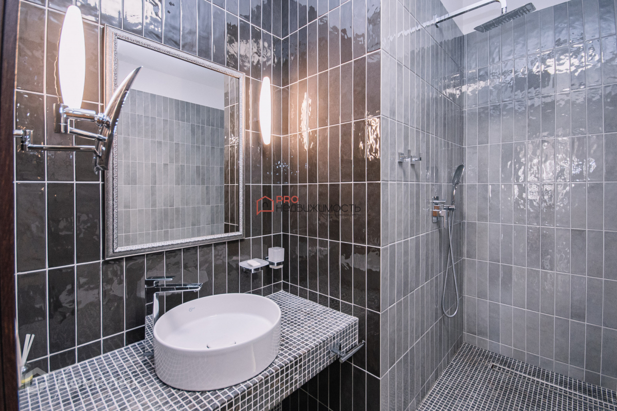 В санузле имеется ванная и душ, теплые полы.