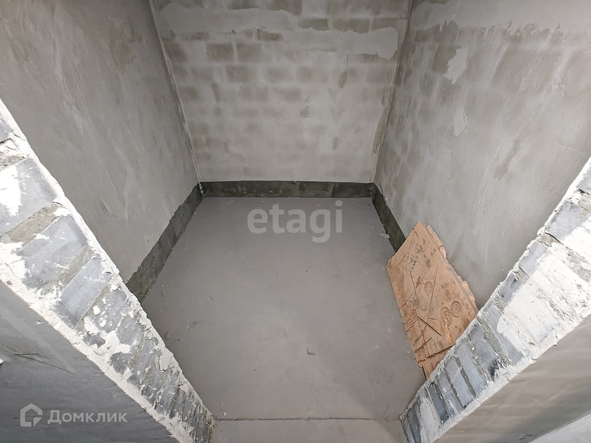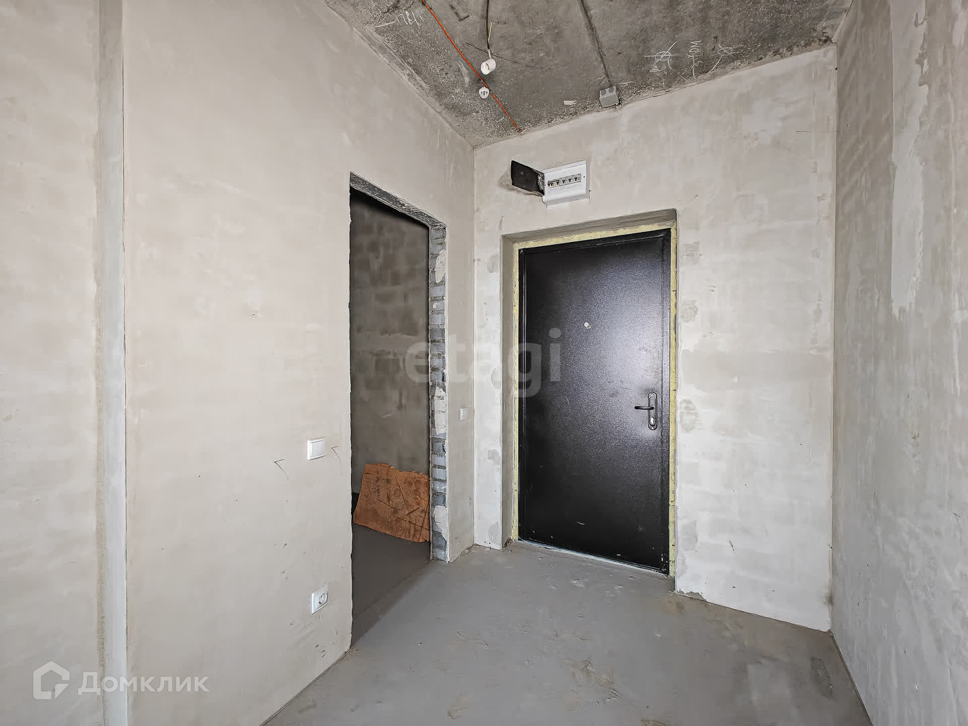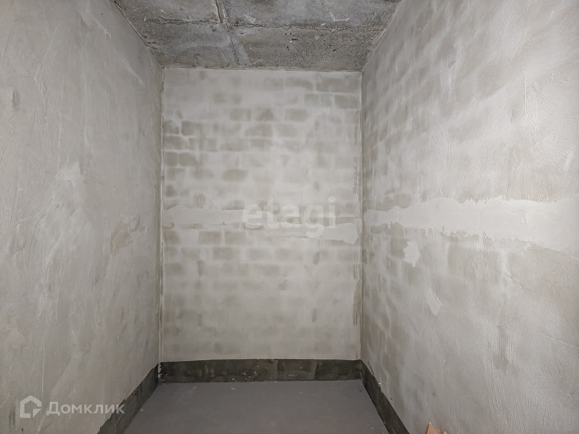 В квартире выполнена подготовка к ремонту: залита стяжка пола, стены выровнены, оштукатурены, потолок ровный.