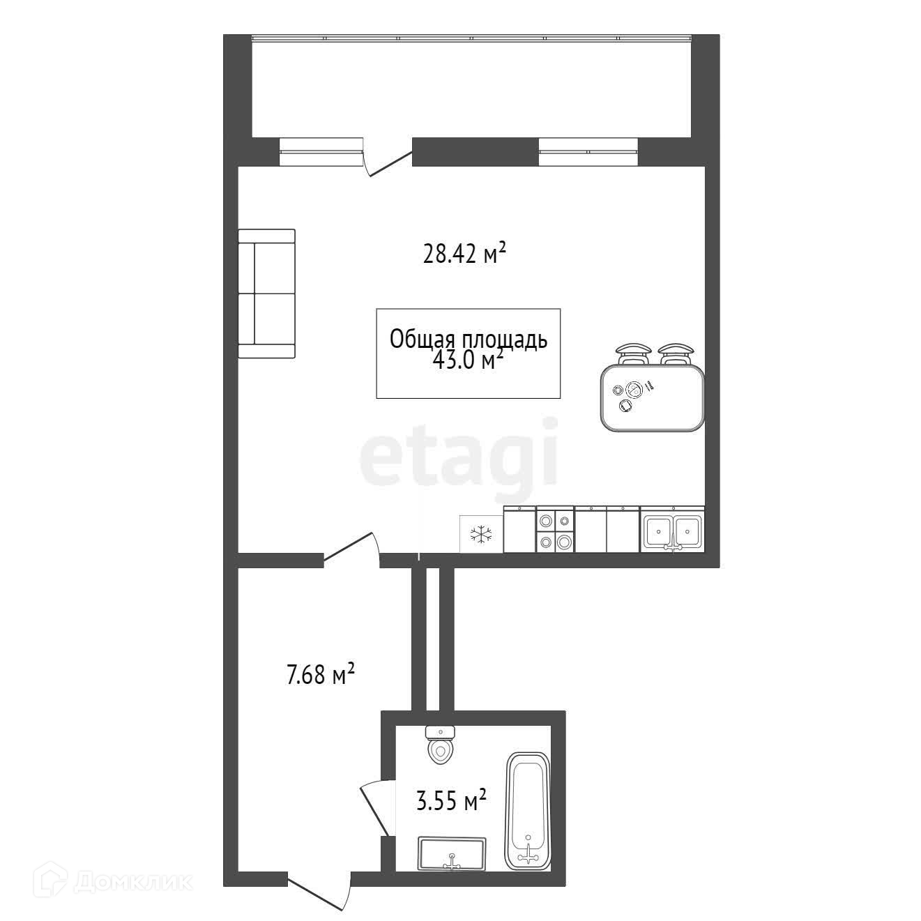 Общая площадь 43 м2