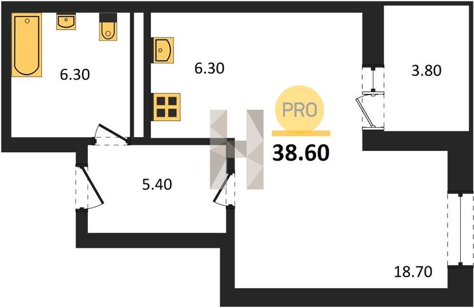 Общая площадь 38.6 м2
