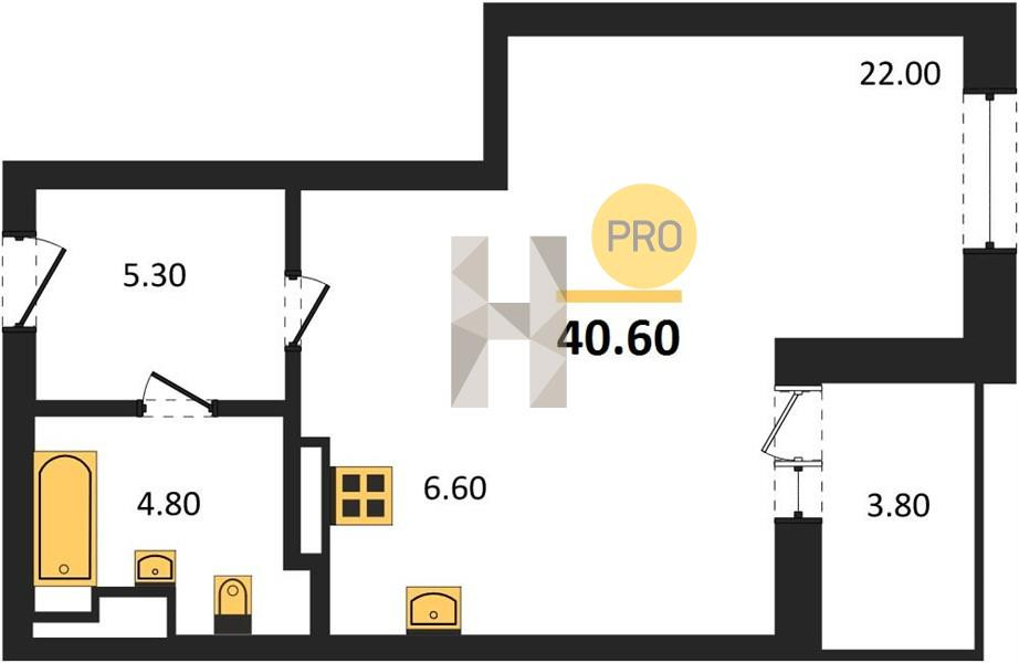 Общая площадь 40.6 м2