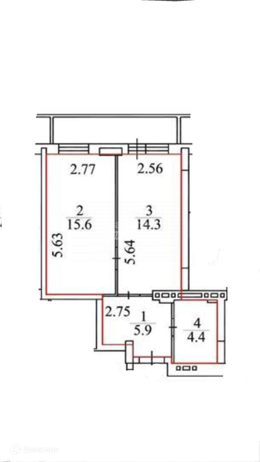 Жилая площадь 15.6 м2