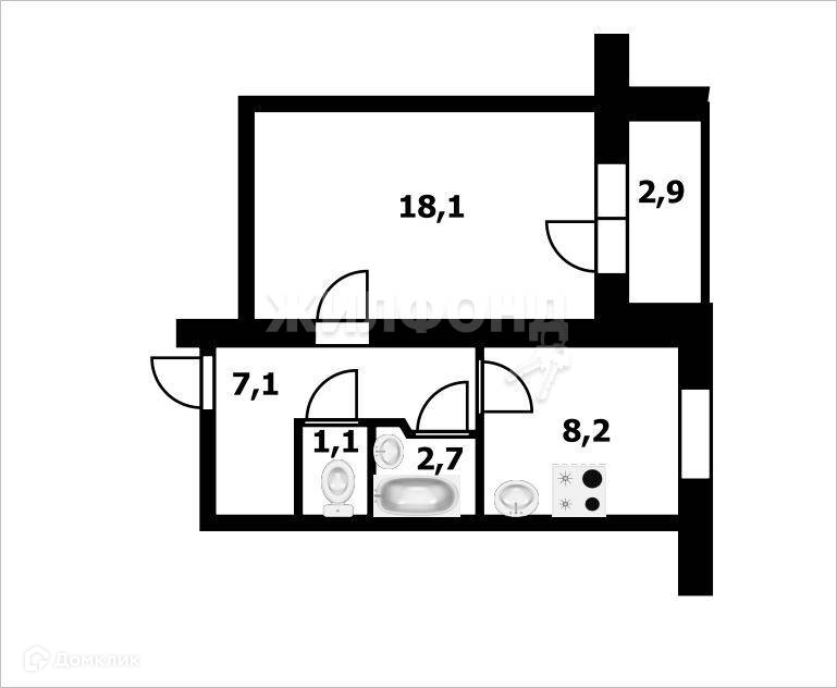 Жилая площадь 18.1 м2