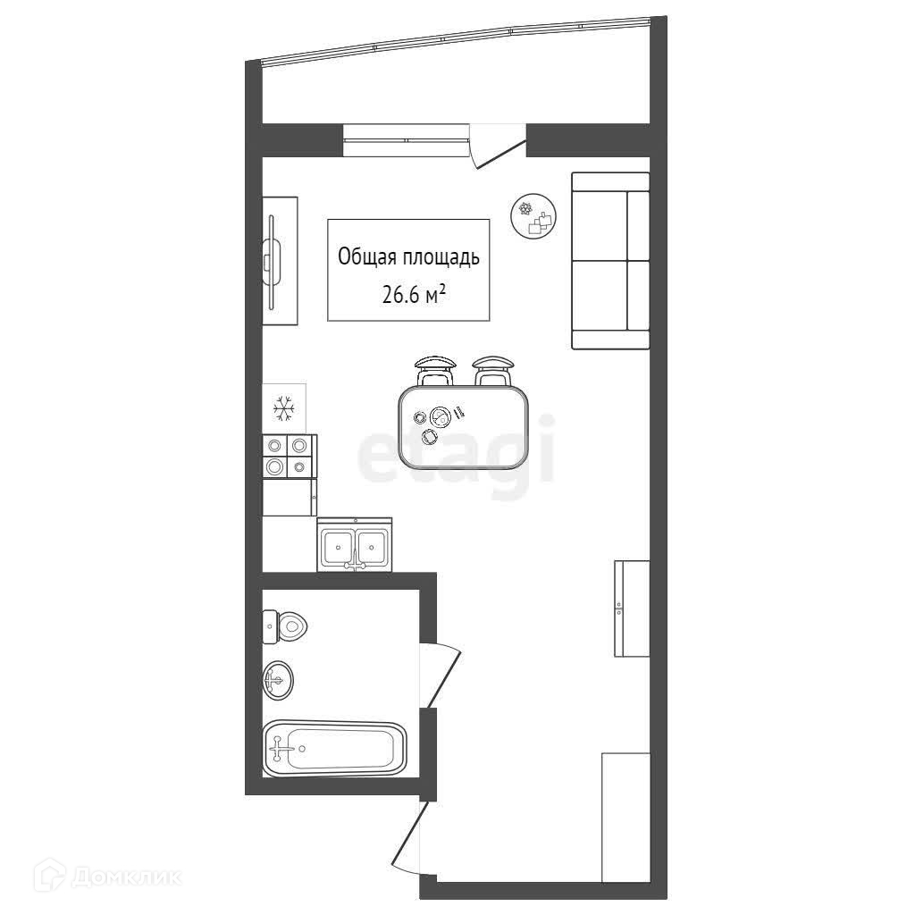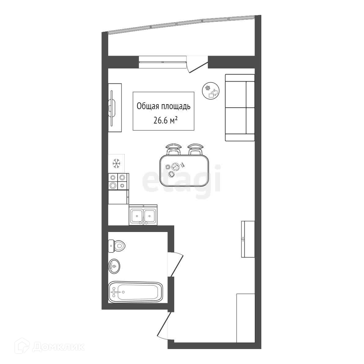 Общая площадь 26.6 м2