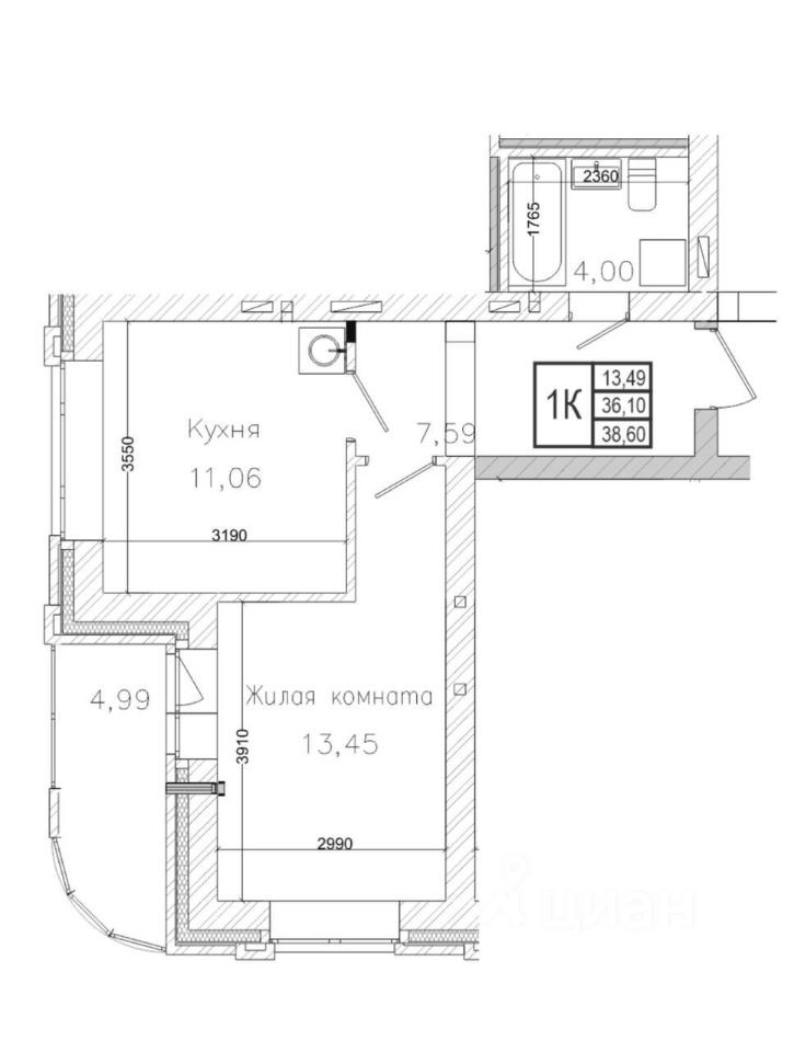 Общая площадь 36.1 м2