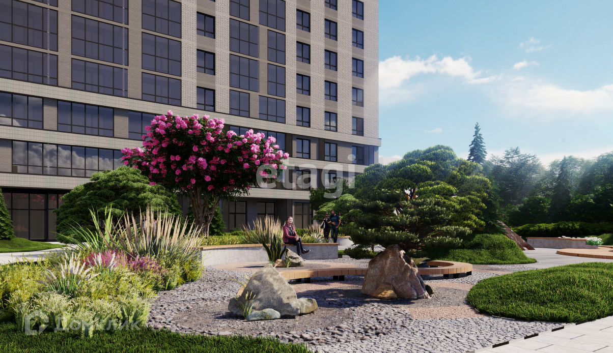 У дома тихий и приватный двор, полностью свободный от автомобильного движения. Территория жилого комплекса создана в стиле японского сада, что придает ей особую атмосферу спокойствия и гармонии.