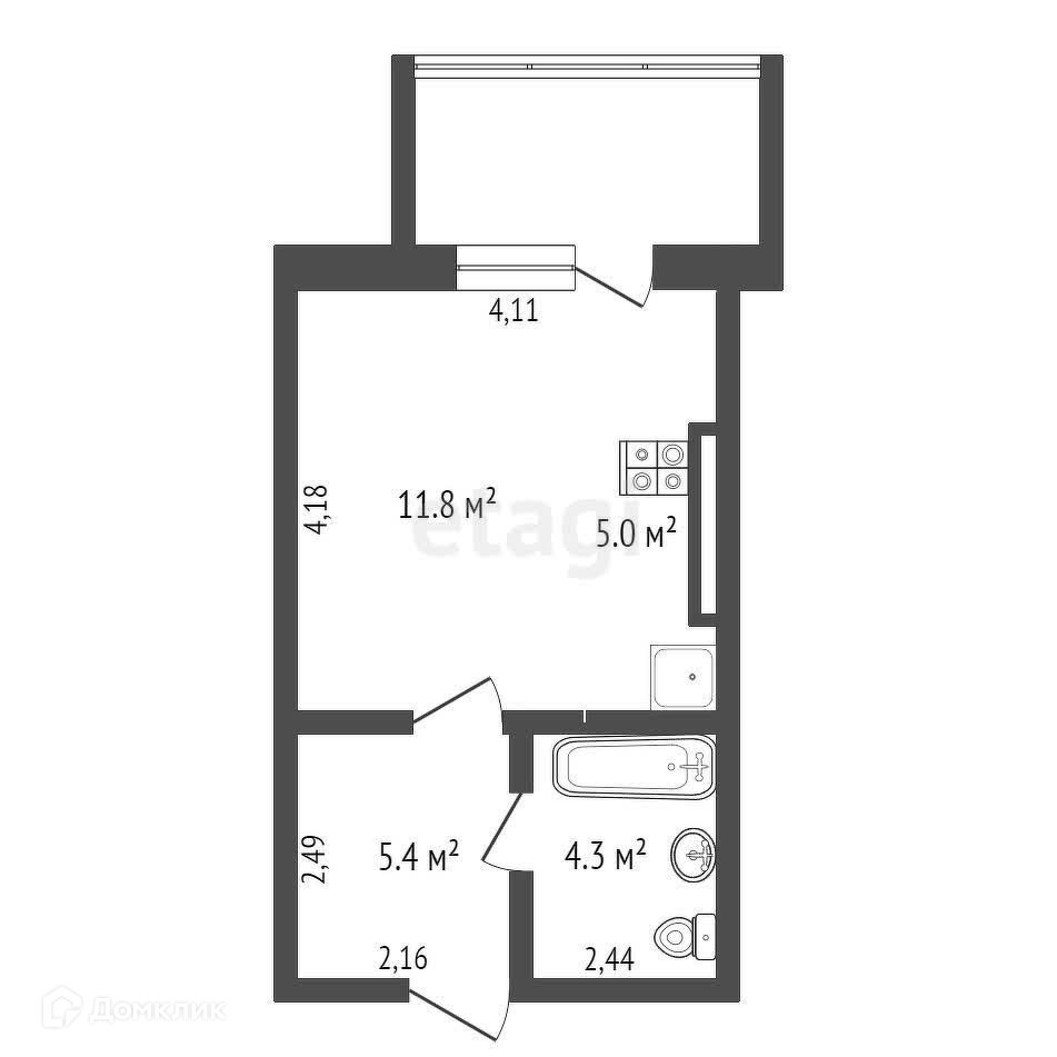 Общая площадь 26.5 м2