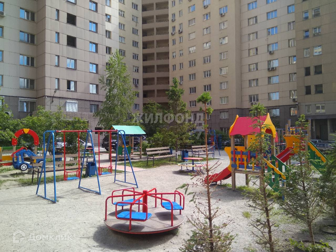 Во дворе современная детская площадка.