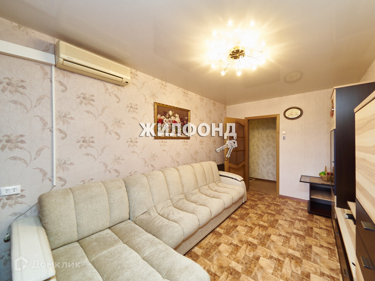 В квартире натяжные потолки, окна пластиковые, балкон застеклен и обшит евровагонкой с покрытием под сосну.