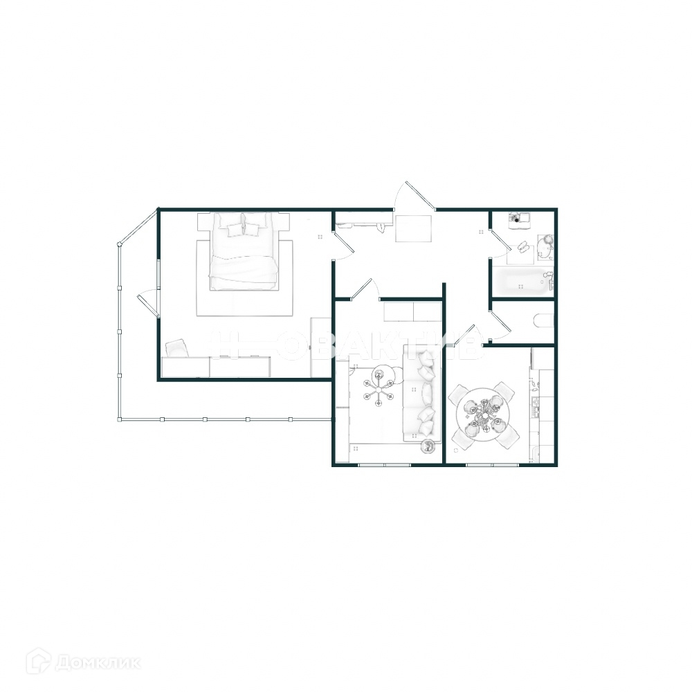 В квapтире две изолированные комнаты 19 и 12 м2, кухня квадратной формы 9 м2, раздельный санузел, угловая большая лоджия