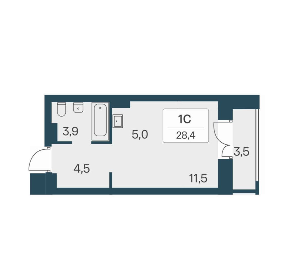 Общая площадь 28.4 м2