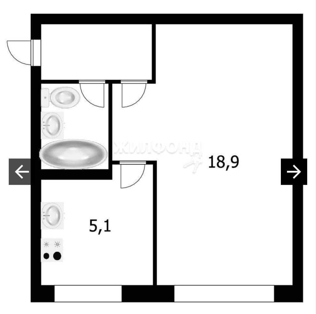 Жилая площадь 18.9 м2