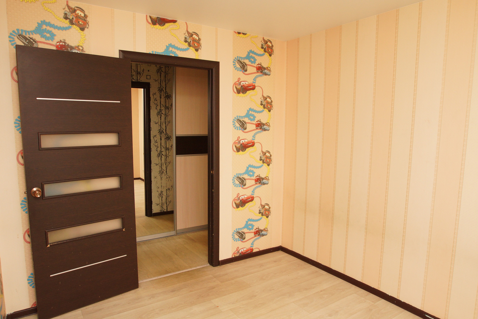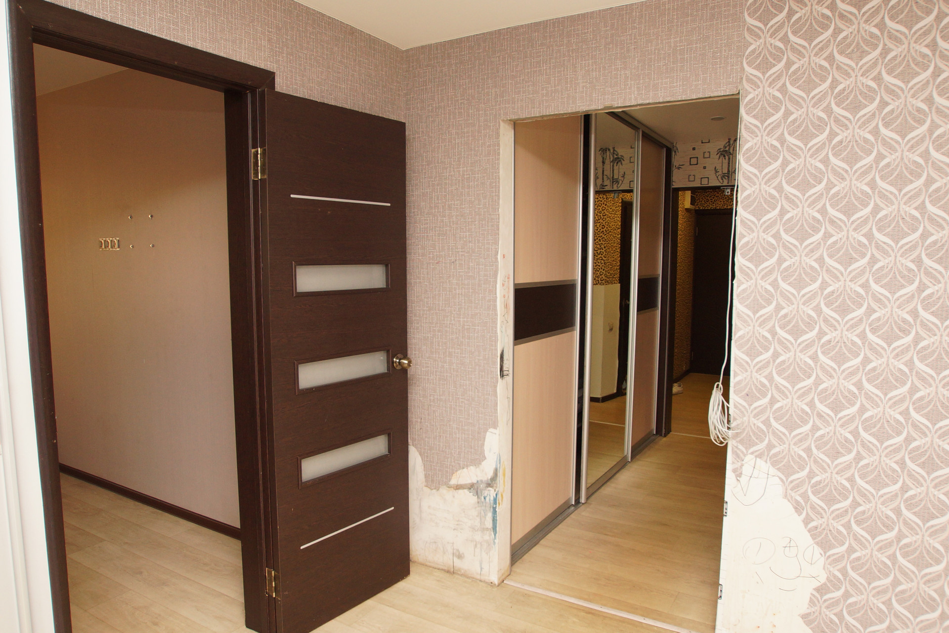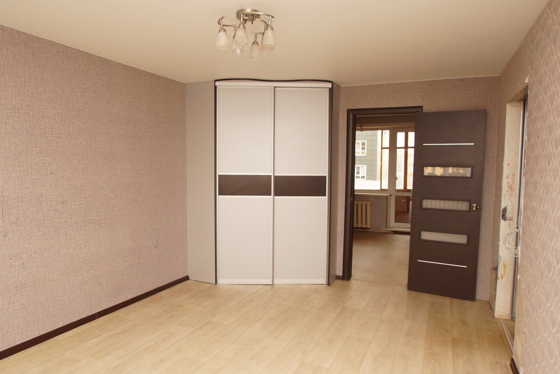 В квартире заменены трубы, проводка, совмещен санузел, потолки натяжные на полу линолеум. Требует косметического ремонта. Для хранения вещей предусмотрены два встроенных шкафа.