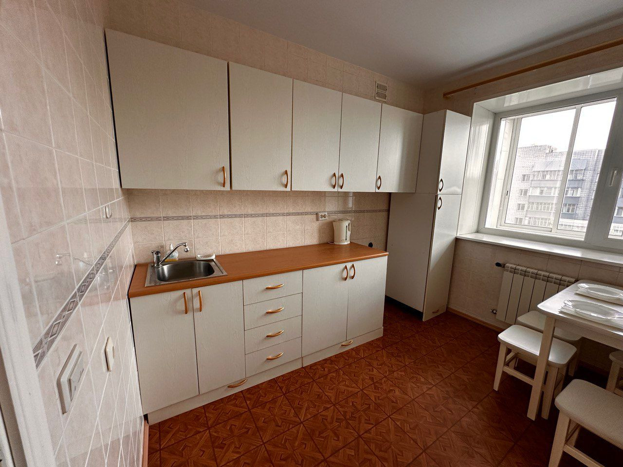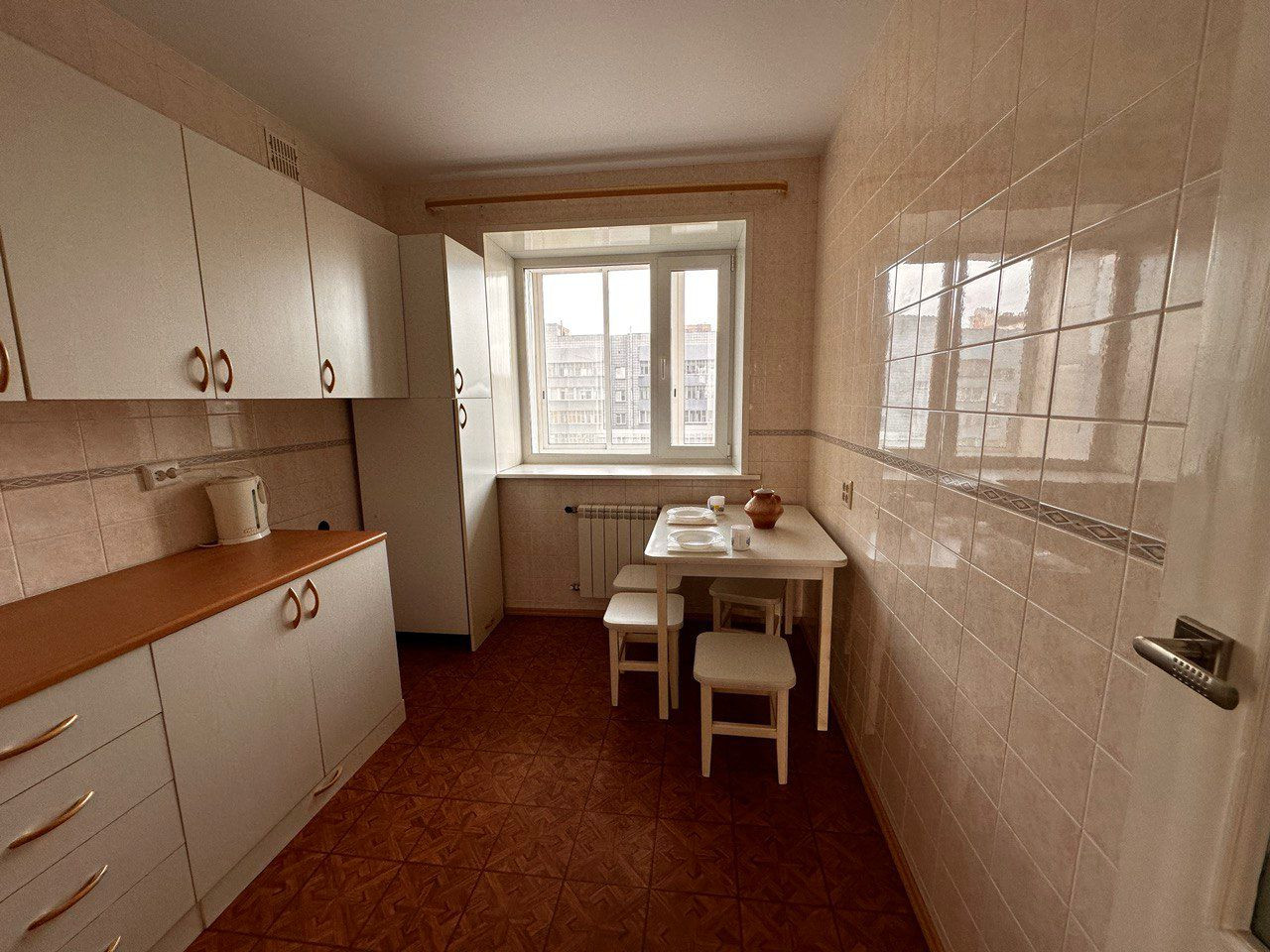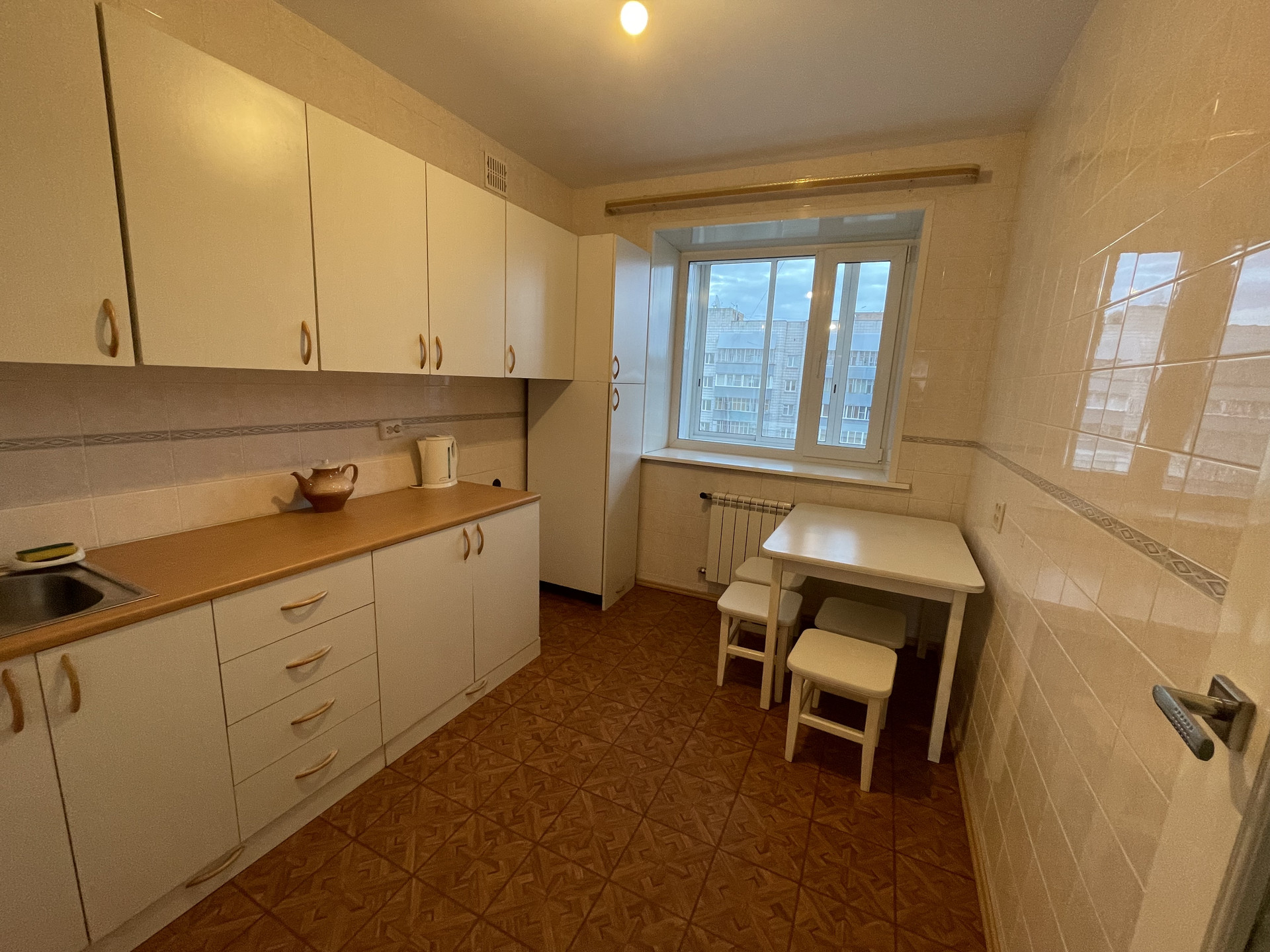 В квартире качественные пластиковые окна, натяжные потолки, добротный линолеум, в ванной установлены смеситель и кран "Oras", которые отличаются своей надежностью и долговечностью, лоджия застеклена(на стеклах установлена тонировка). Квартира после косметического ремонта, стены и пол ровные.