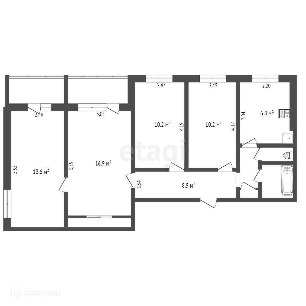 Общая площадь 74.9 м2