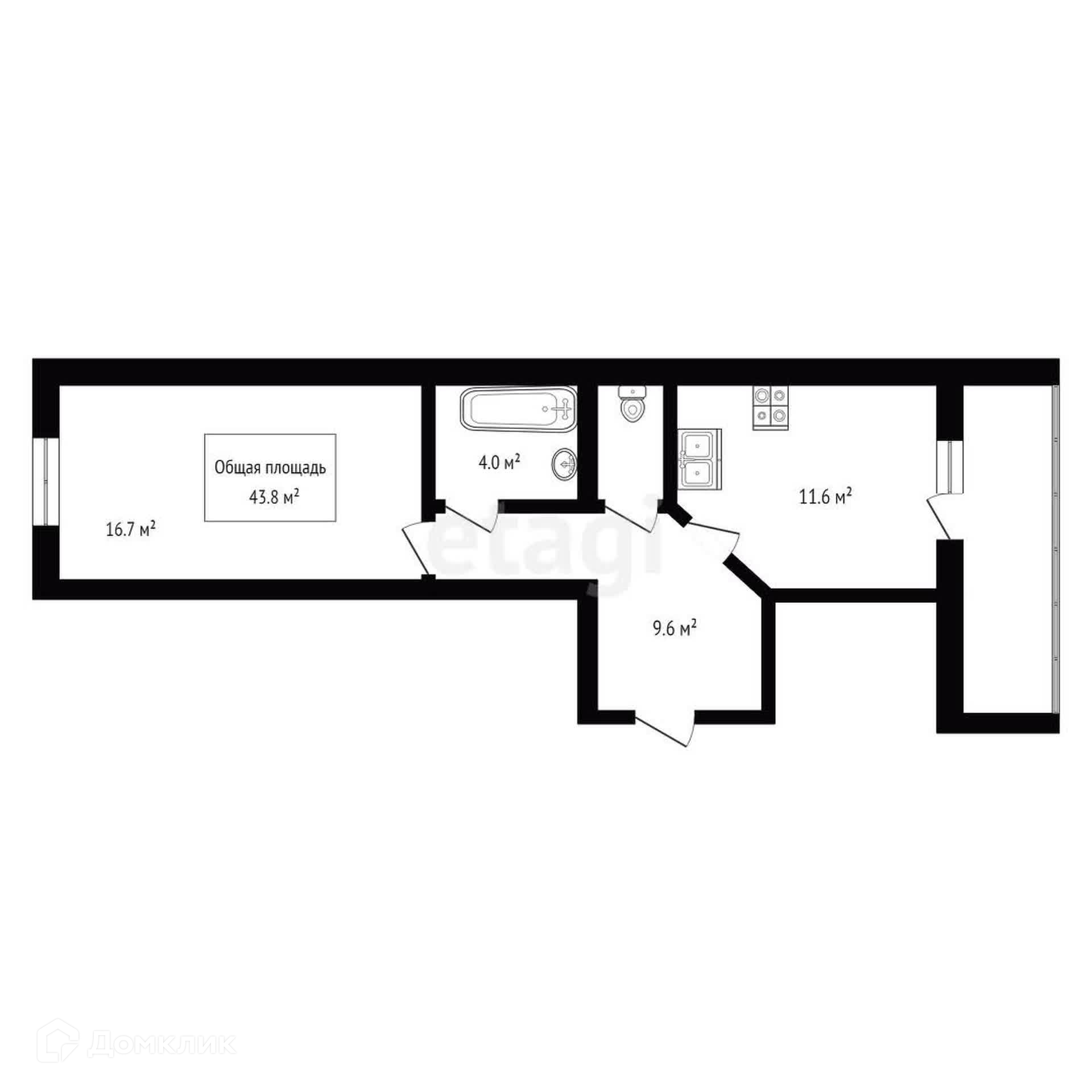 Общая площадь 43.8 м2
