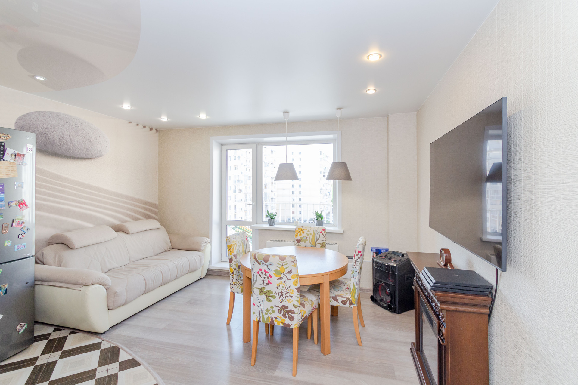 Ремонт в квартире произведен качественными, импортными материалами. Квартира очень просторная, стильная, с хорошей чистой энергетикой и очень хорошей планировкой, на 3 стороны, которая включает в себя большой квадратный коридор, просторную кухню - гостиную, две детские комнаты и спальню для взрослых, просторную ванную комнату, балкон, большую отгороженную отсечку на 2 квартиры. В квартире нашему счастливому покупателю приятным БОНУСОМ остается почти вся мебель (кроме техники и ротанговой плетенной мебели), а именно: качественный дорогой кухонный гарнитур "Блюм" (с доводчиками) со встроенными духовым шкафом и варочной панелью, кухонный стол со стульями и диван " Аскона" на кухне; в спальне остается кровать, шкаф, тумбочки и стол с зеркалом (мебель " Лазурит"), в детских комнатах - вся мебель кроме ротанговой, шкаф в коридоре. Шикарная квартира из вариантов " ЗАХОДИ - И ЖИВИ!"