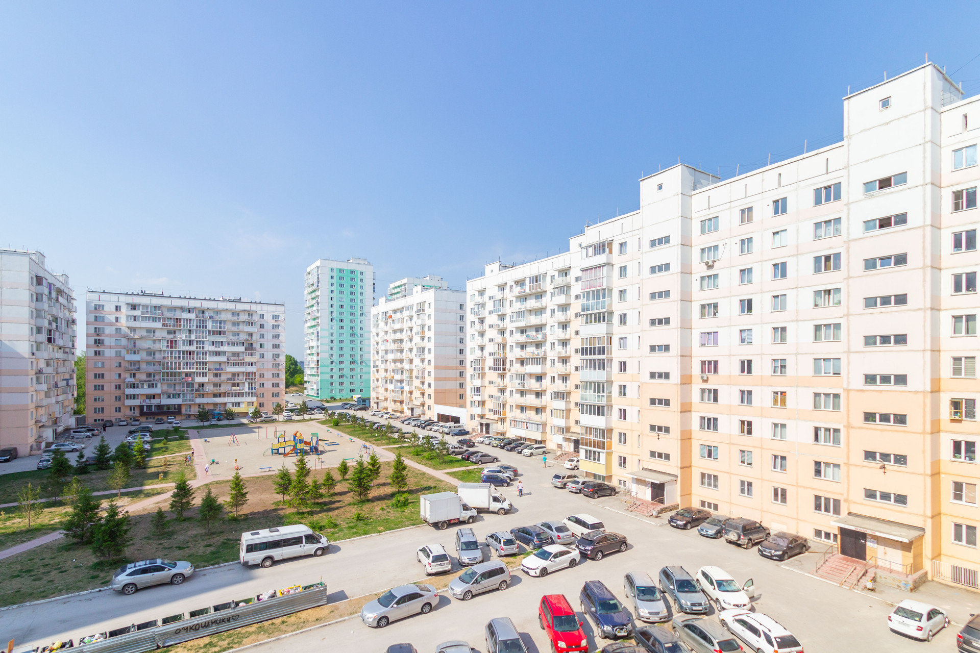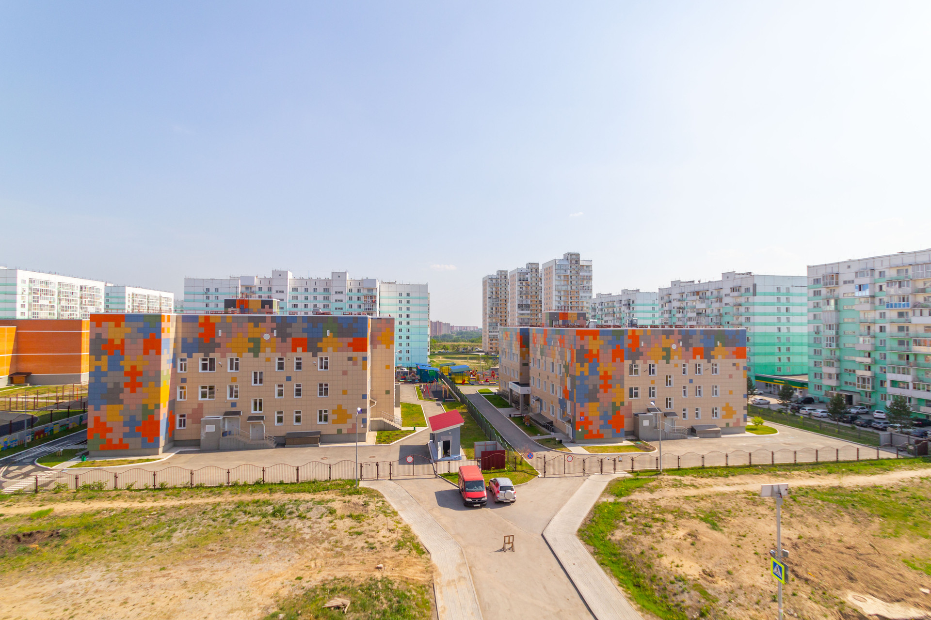 Придомовая территория максимально благоустроена: высажены красивые сосны, устроена прогулочная зона для жителей, детские площадки для ребят разного возраста, спортивные тренажеры для занятий на свежем воздухе, освещённые улицы и дворы. Во дворе имеется большое количество парковочных мест для автолюбителей.