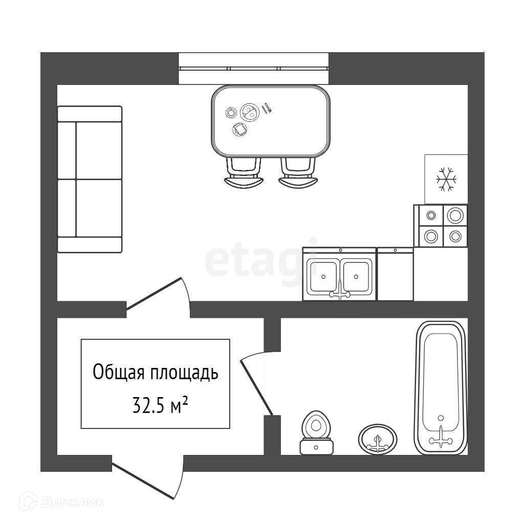 Общая площадь 32.5 м2