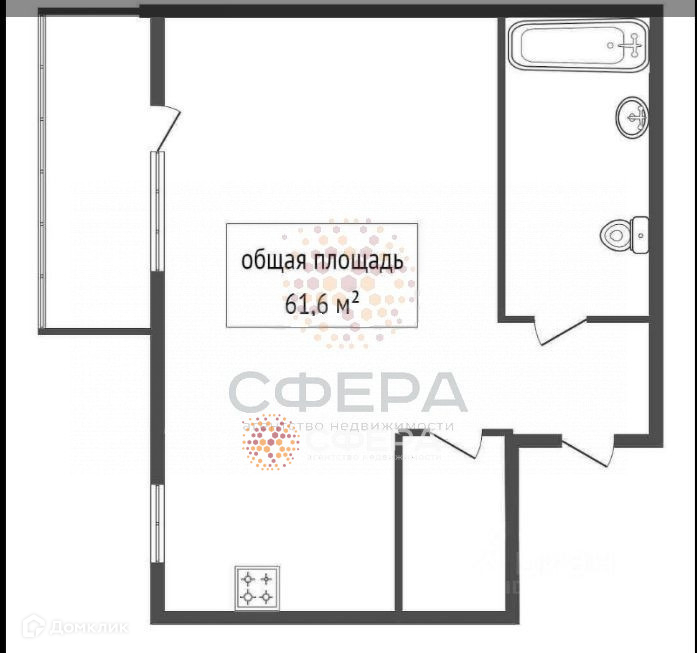 Общая площадь 61.6 м2