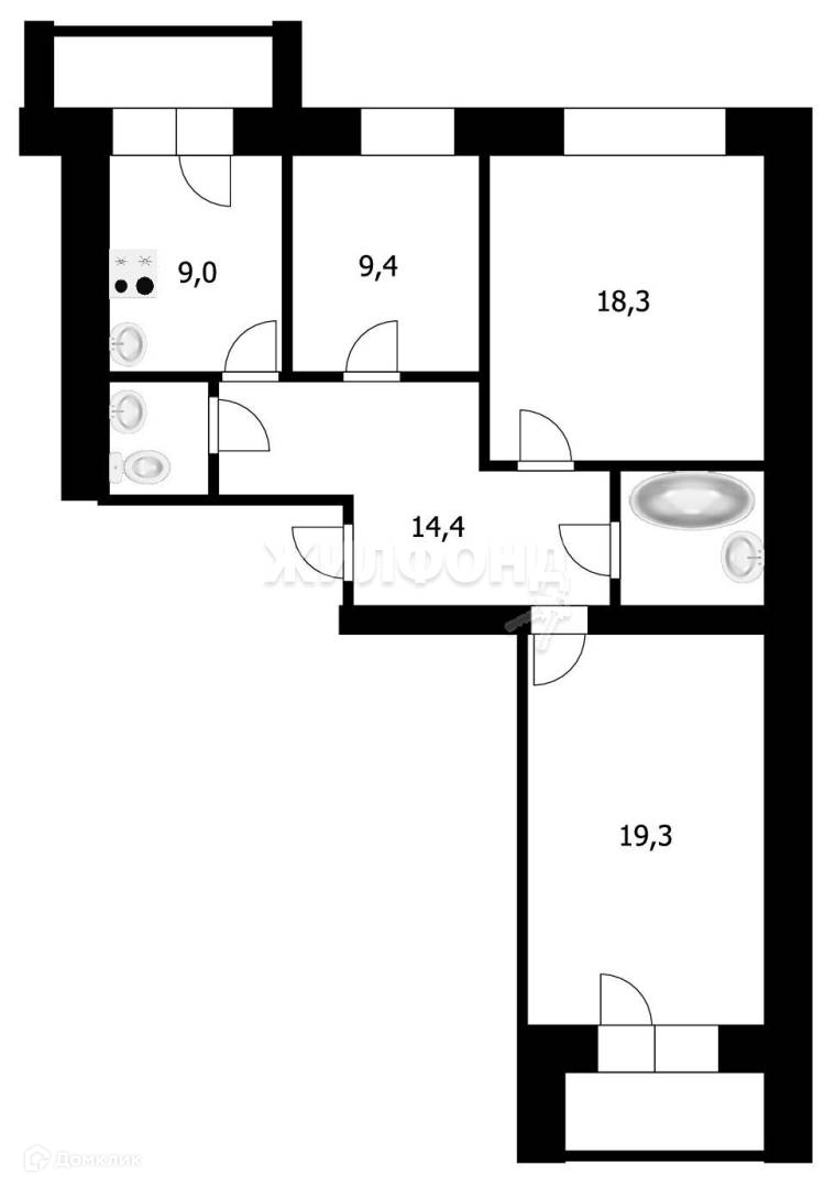 3-комнатная квартира, 76.7 м2, этаж 9 / 10, на продажу в Новосибирске, 2-я Обская улица, 69/2