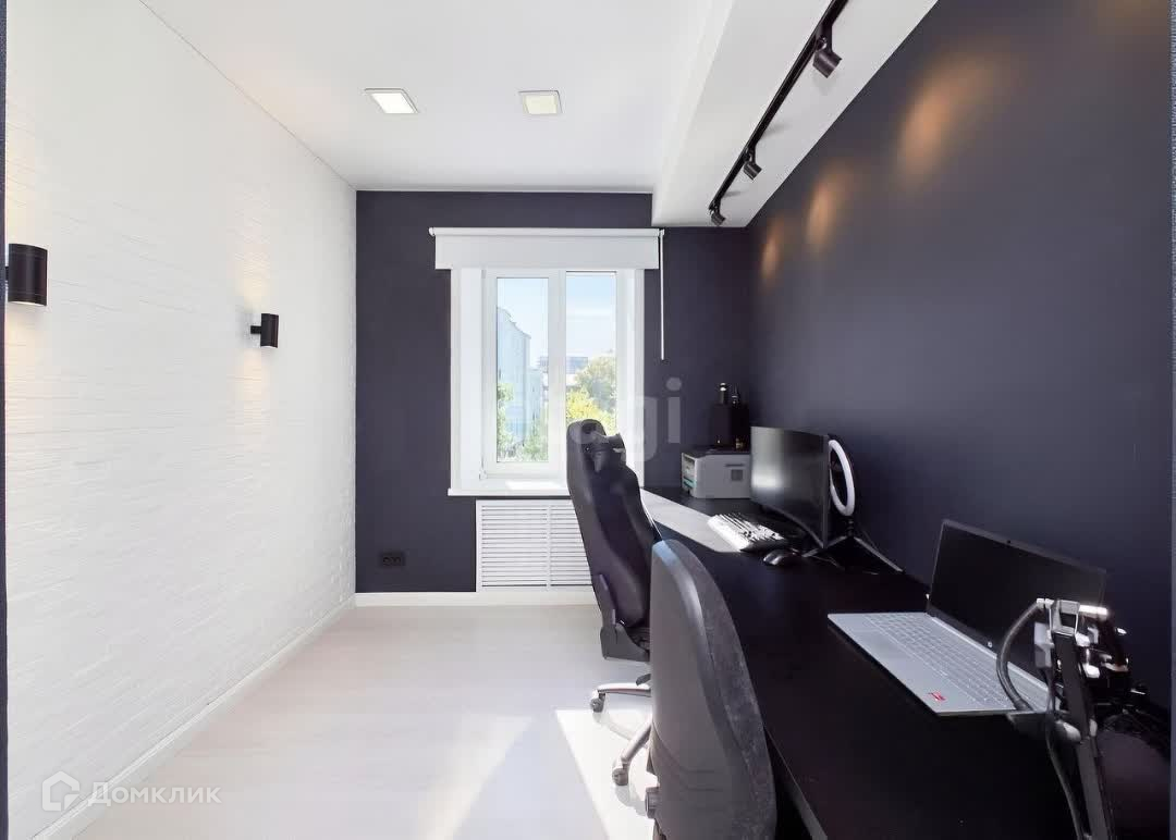 В кабинете сделан ремонт, которые позволит сосредоточиться на работе или учебе, а освещение поможет работать с комфортом не напрягая зрение.