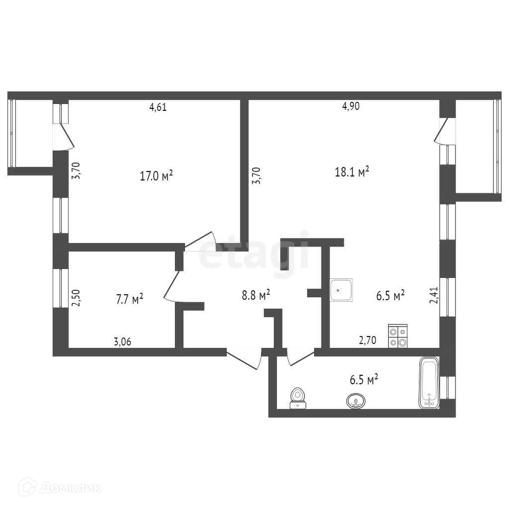 Общая площадь 64.6 м2