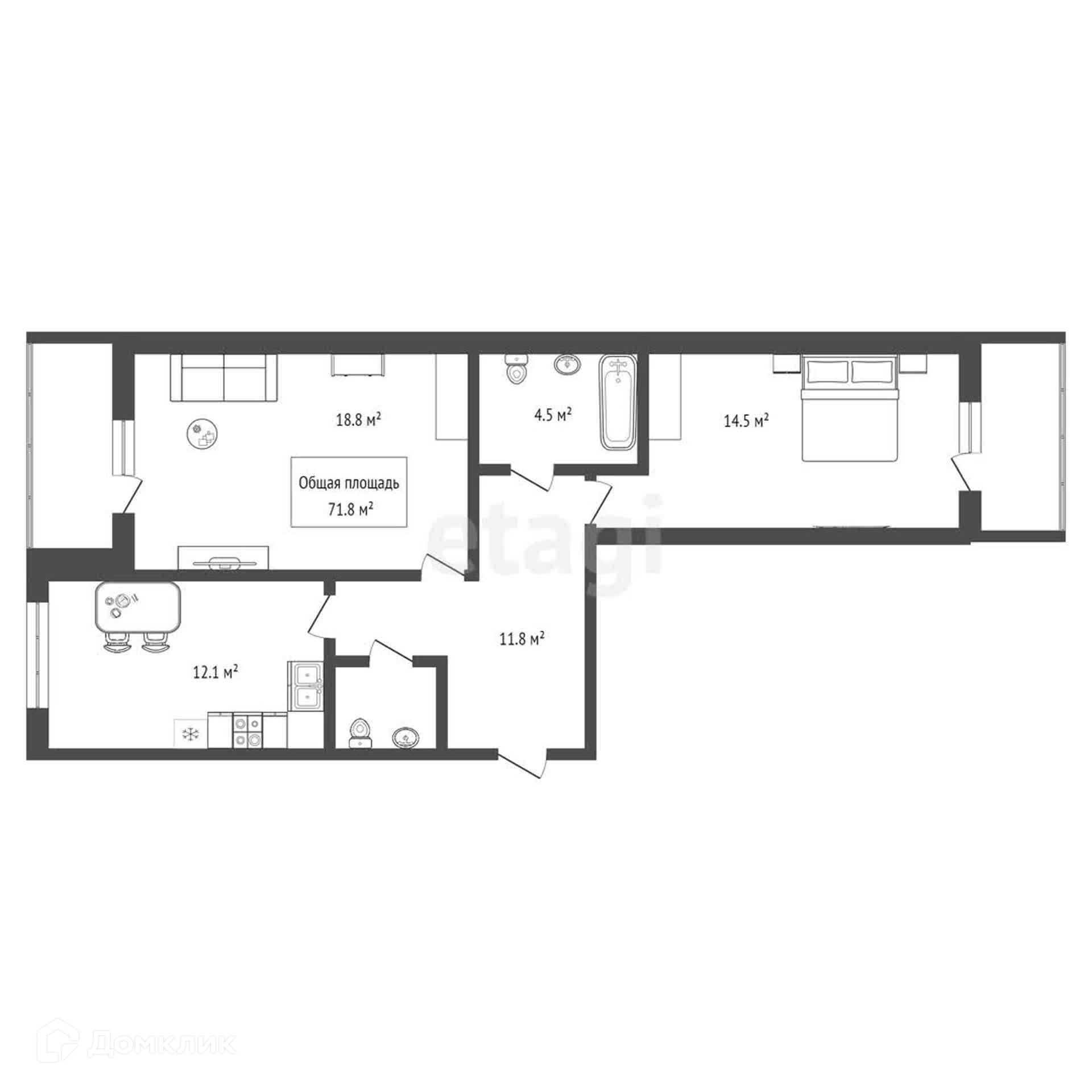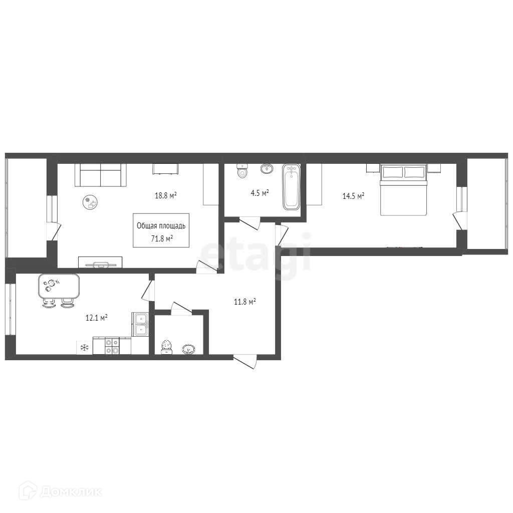 Общая площадь 71.8 м2