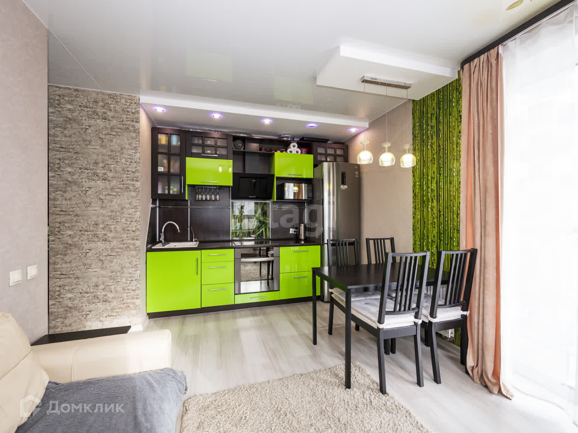 Отличный ремонт по дизайн проекту, в приятных современных тонах. В квартире остаётся качественная встроенная кухня, которая делалась под заказ(фасады крашенные, не пластик), плита, духовой шкаф, диван, в прихожей встроенный шкаф, двухъярусная кровать в детской и стол.