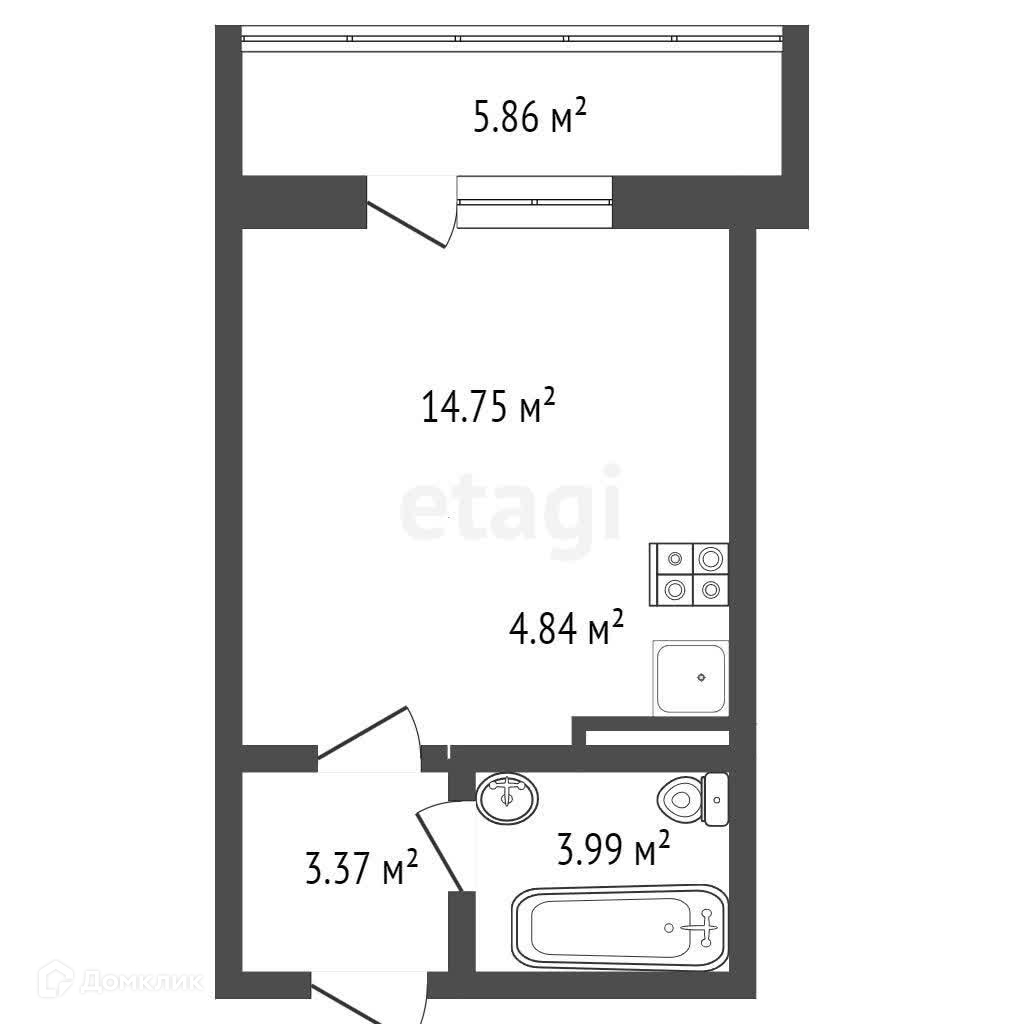 Квартира студия, 27.1 м2, этаж 3 / 18, на продажу в Новосибирске, Стартовая улица, 1