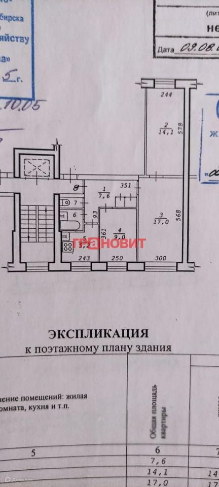 3-комнатная квартира, 56.4 м2, этаж 2 / 9, на продажу в Новосибирске, улица Челюскинцев, 4