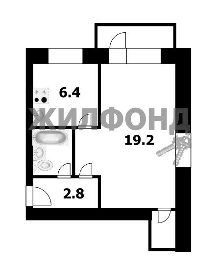 Жилая площадь 19.2 м2