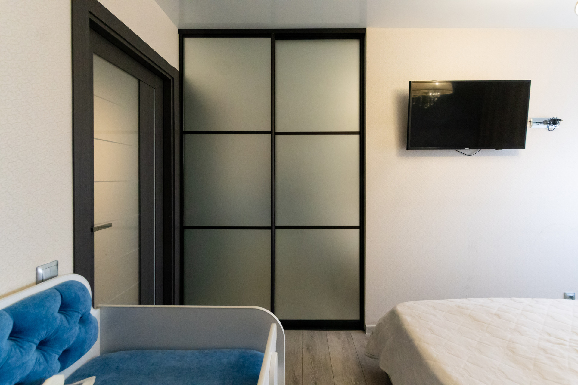 В Квартира укомплектована встроенной мебелью и бытовой техникой.