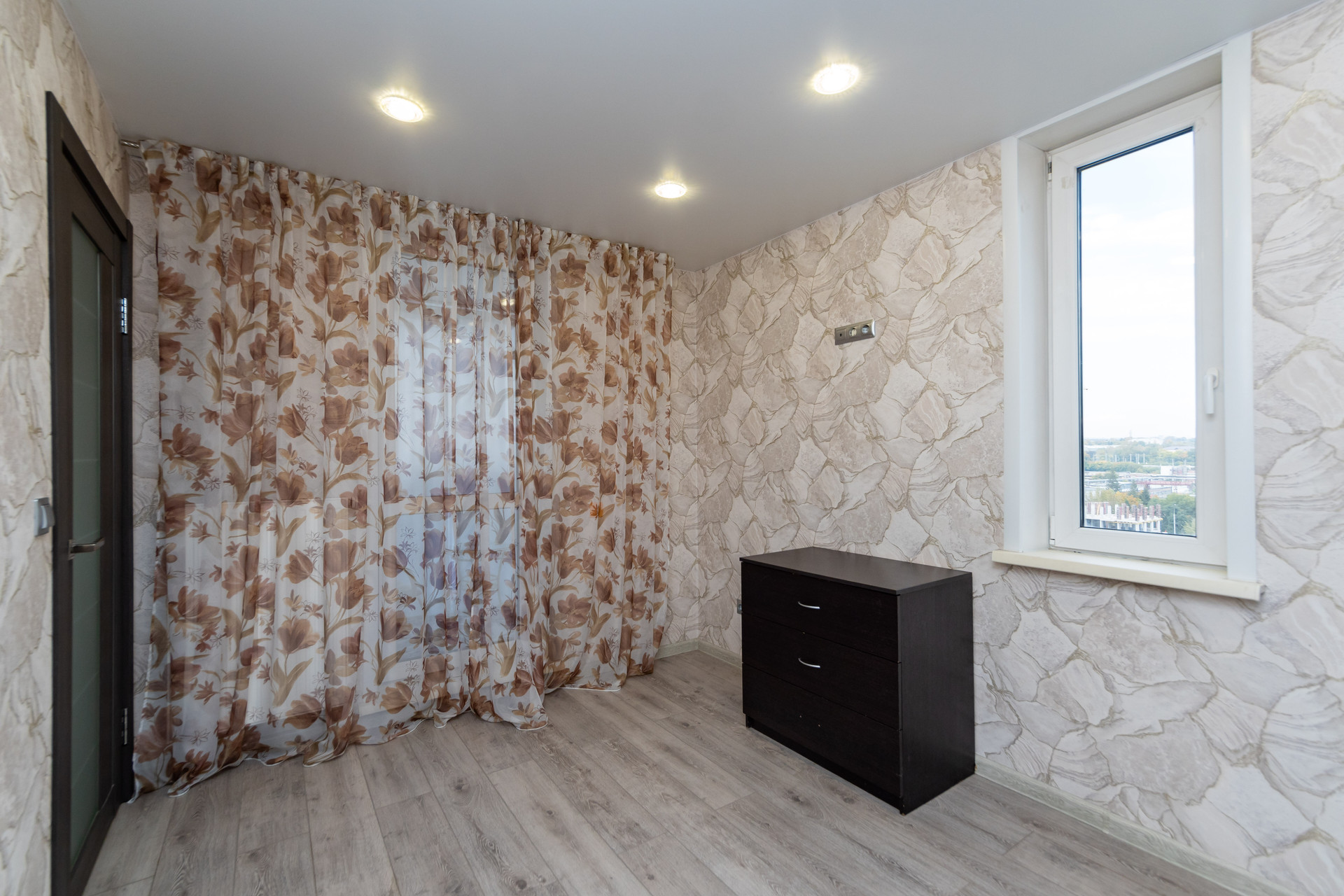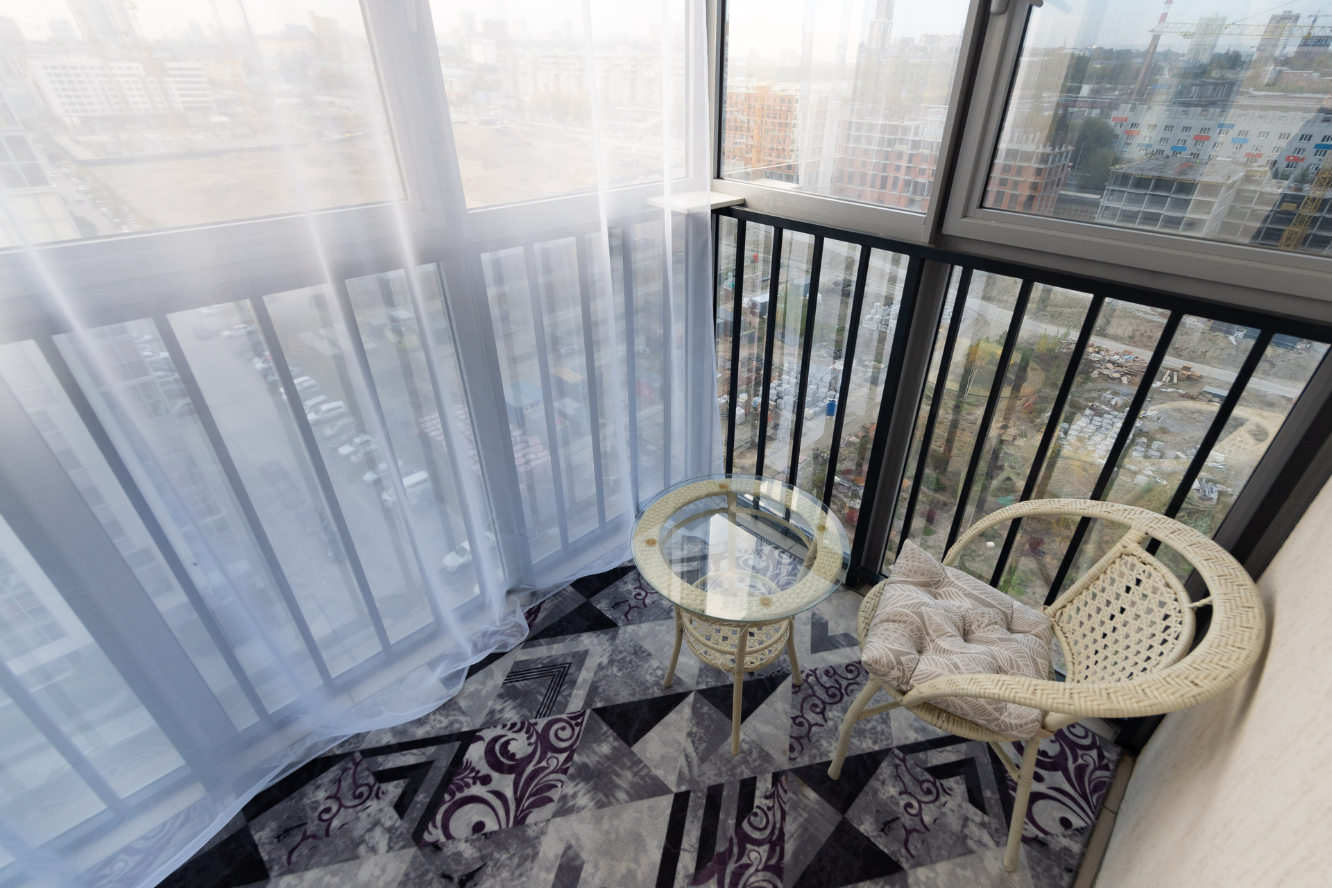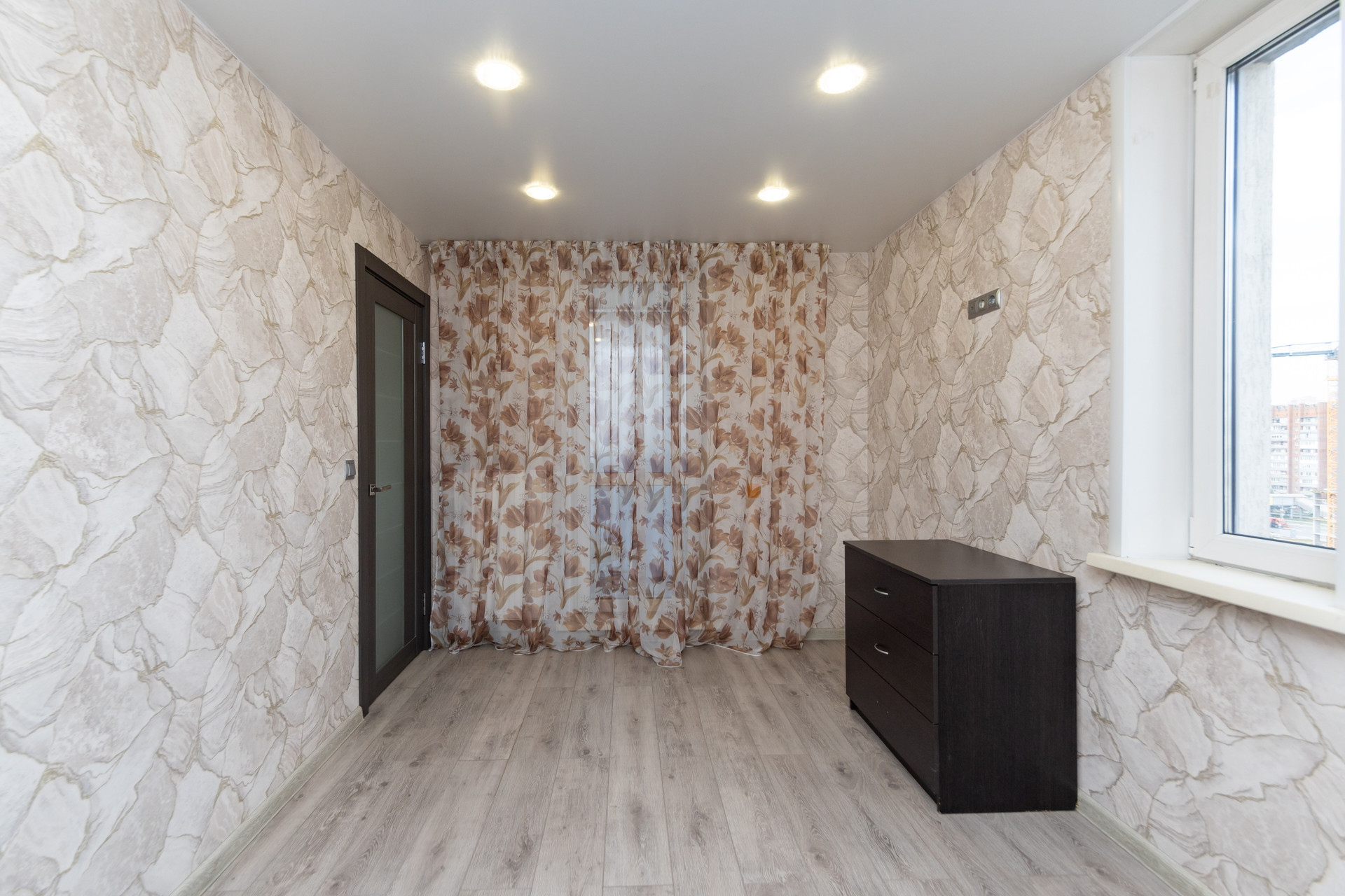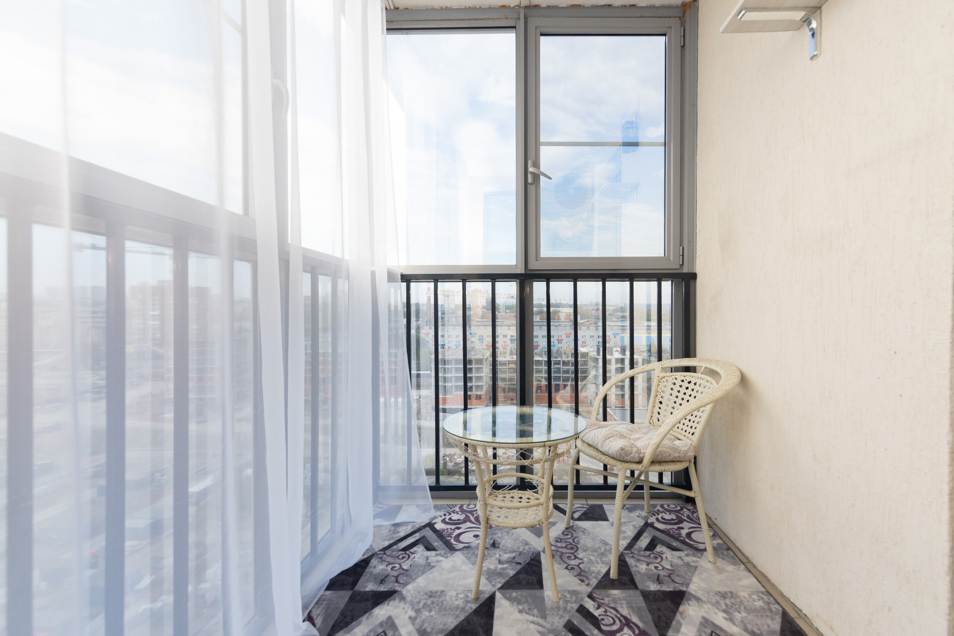 Из окон открывается прекрасный вид на двор и улицу, а также имеется застекленная лоджия, где можно проводить время на свежем воздухе.