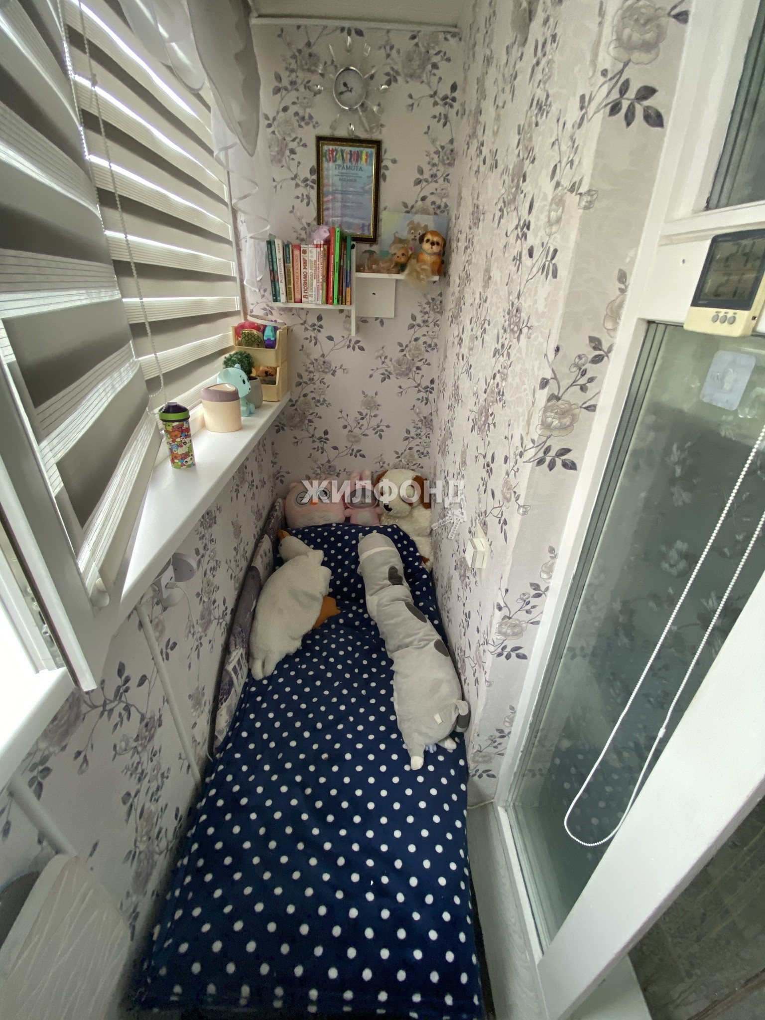 Полностью утеплена лоджия и установлен обогреватель. Зимой температура +24 градуса.