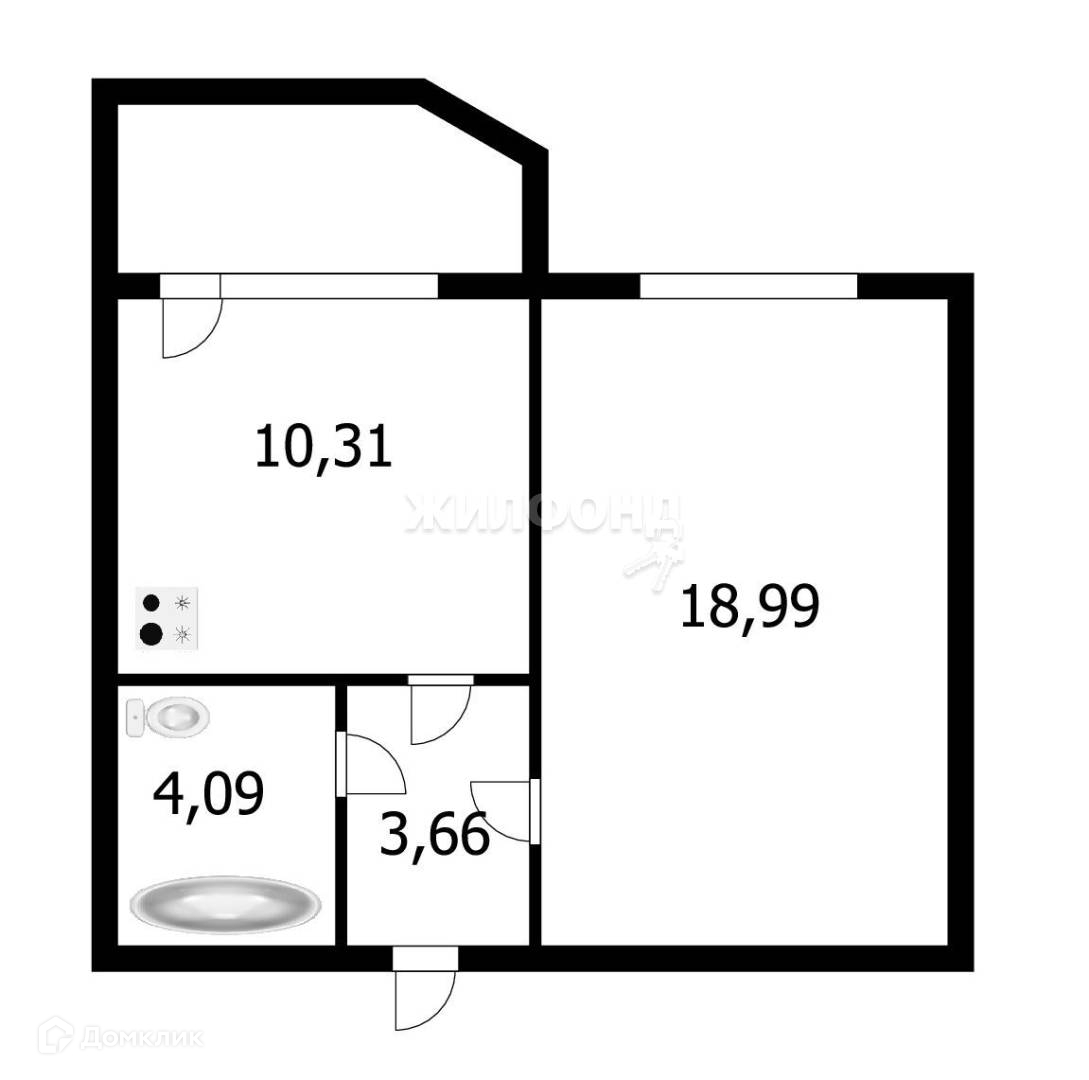 1-комнатная квартира, 40.5 м2, этаж 9 / 12, на продажу в Новосибирске, улица Стофато, 5