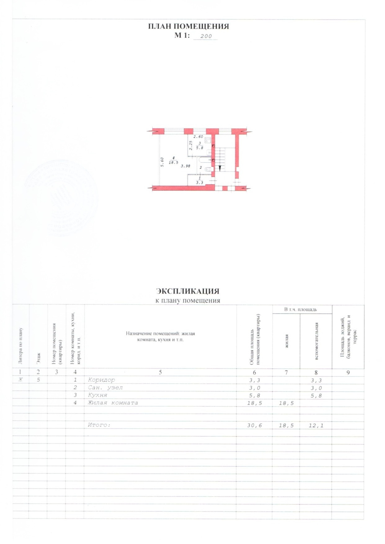 Общая площадь 30.6 м2