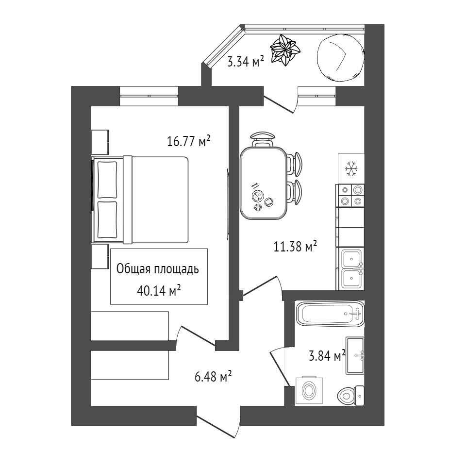 Общая площадь 39.82 м2