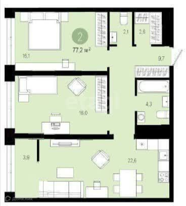 Общая площадь 77.2 м2