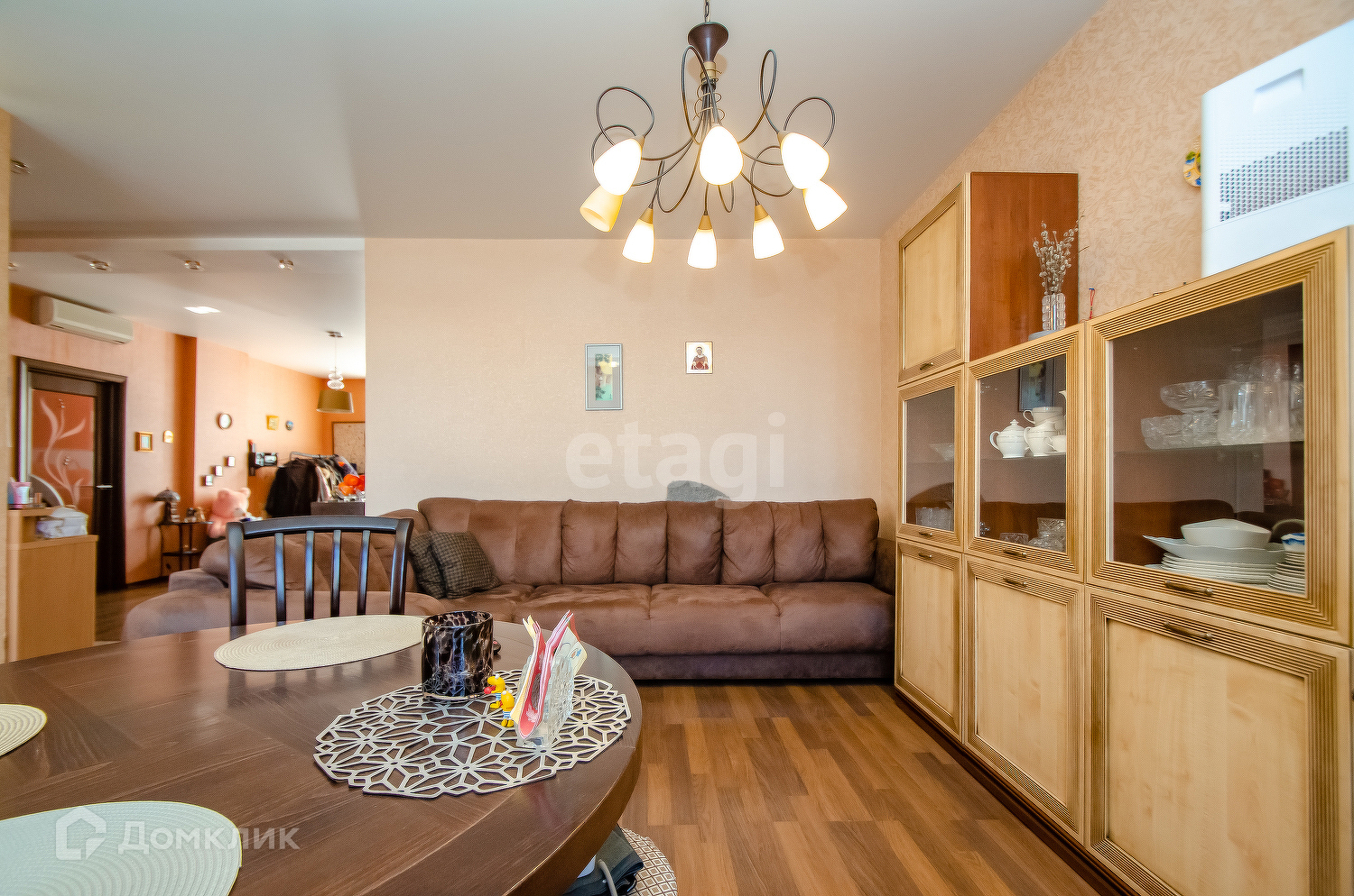 Квартира расположена в кирпичном доме, что обеспечивает отличную звуко- и теплоизоляцию, идеально подходящую для комфортной жизни в любое время года.