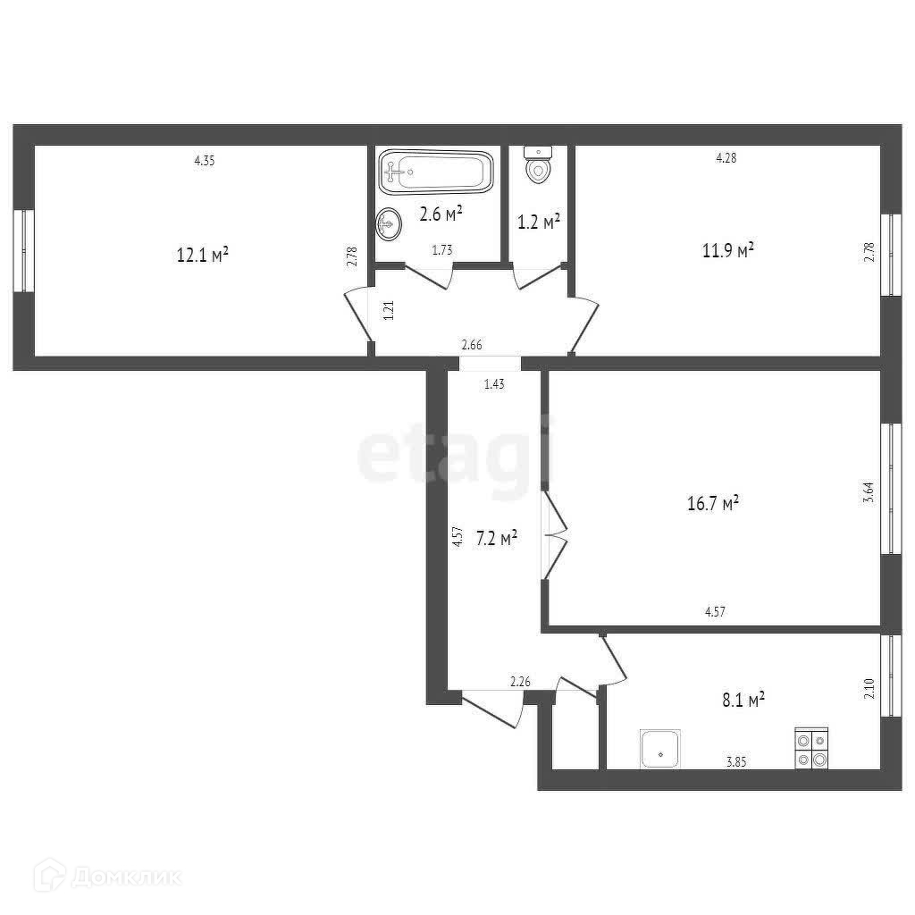 Общая площадь 64 м2