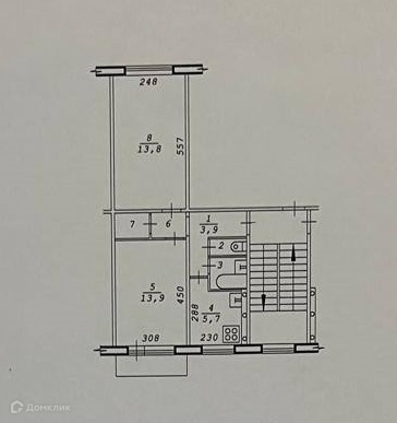 2-комнатная квартира, 43.9 м2, этаж 3 / 5, на продажу в Новосибирске, улица Челюскинцев, 36