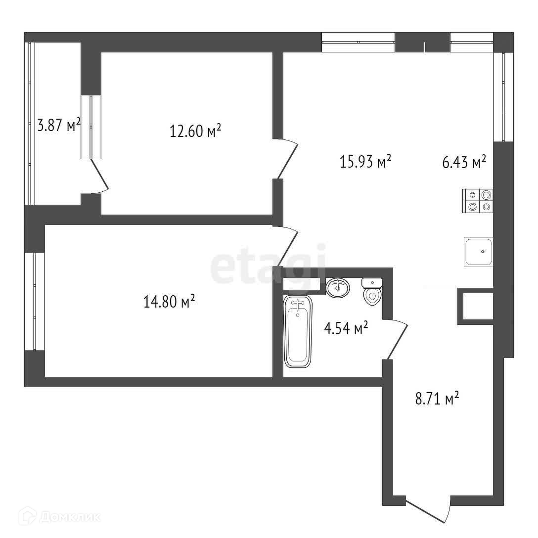 Общая площадь 63.3 м2
