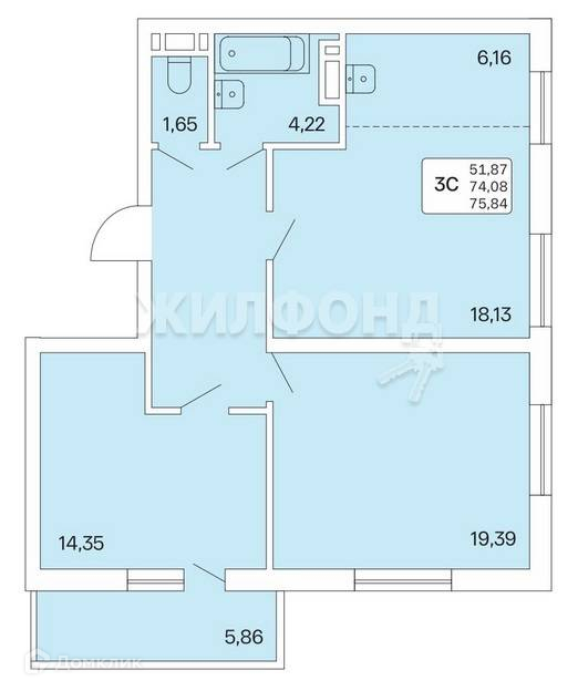 Общая площадь 73.8 м2