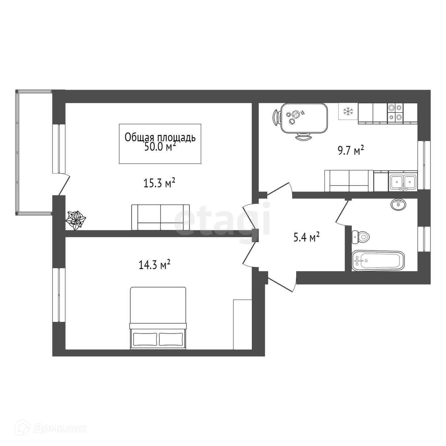 Общая площадь 50 м2