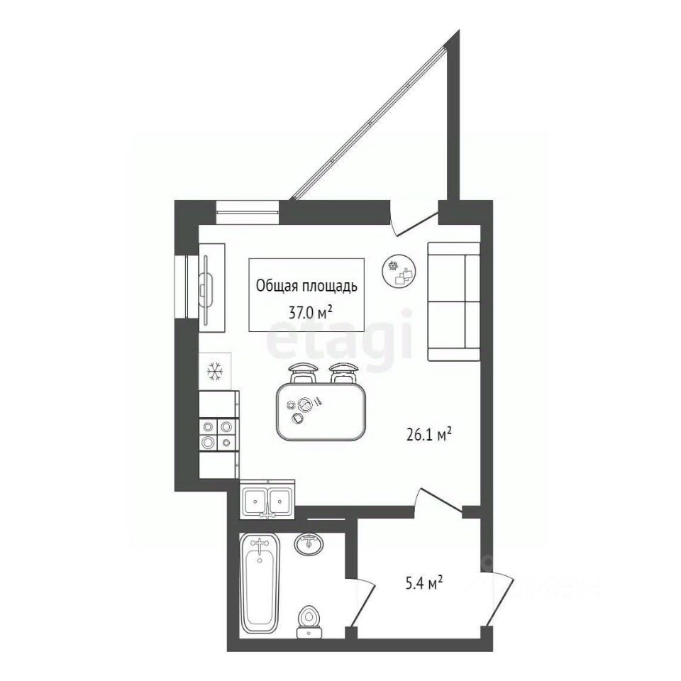 Общая площадь 37 м2